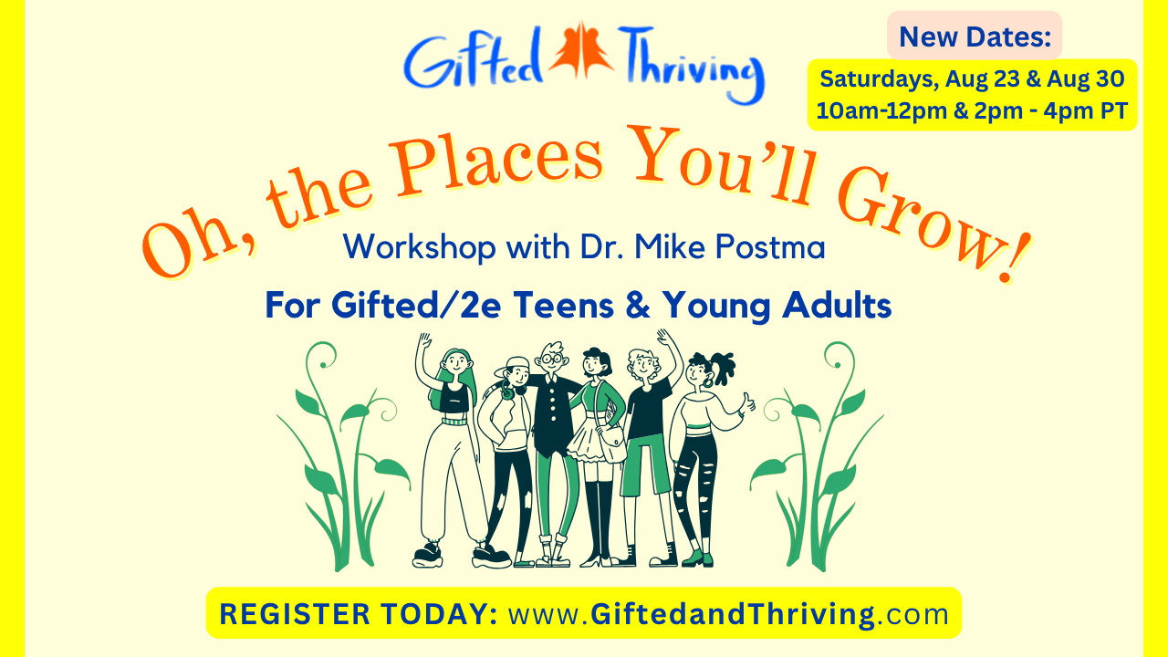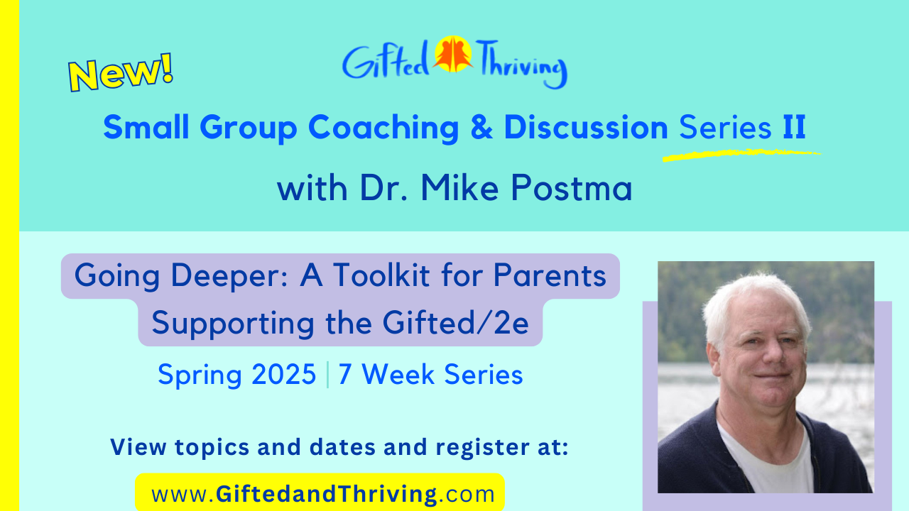 Join us for our monthly live signature series webinars and access recordings from previous webinars! Gifted & Thriving's Signature Series Webinars with Dr. Mike and special guest experts share information on relevant and timely topics that the Gifted/2e community needs most to understand, learn more about and support the holistic needs of the Gifted/2e individual.