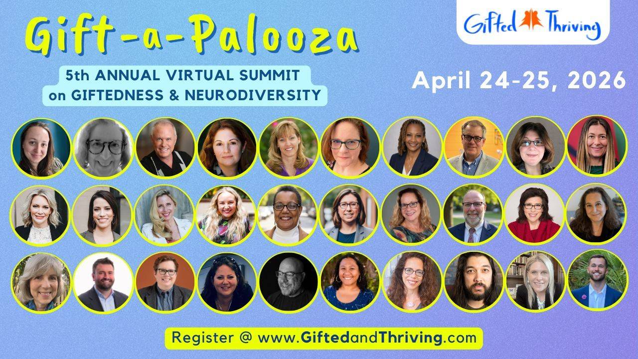 Gift-a-Palooza brings the BEST in the field of gifted and talented together so you have the opportunity to learn from some of the latest research on relevant and important topics in gifted education, social and emotional needs, and mental and physical health. Together, we strive to inform your practice and development, whether an educator, therapist, parent or gifted individual. We hope you join this special event and celebration of our incredible community!